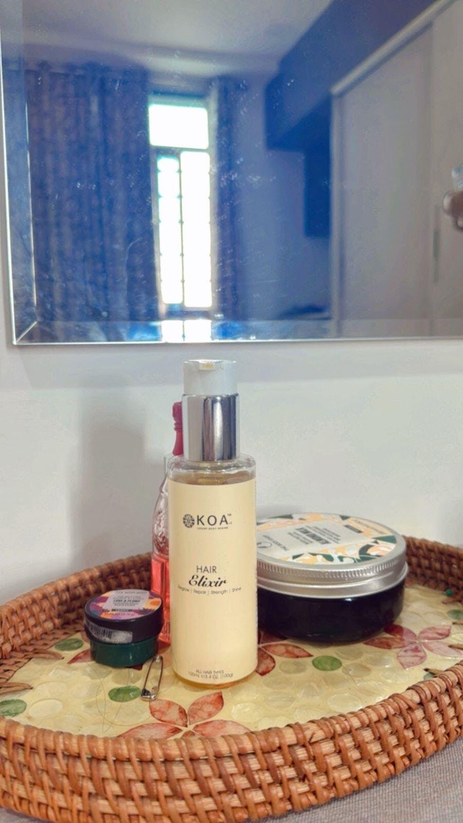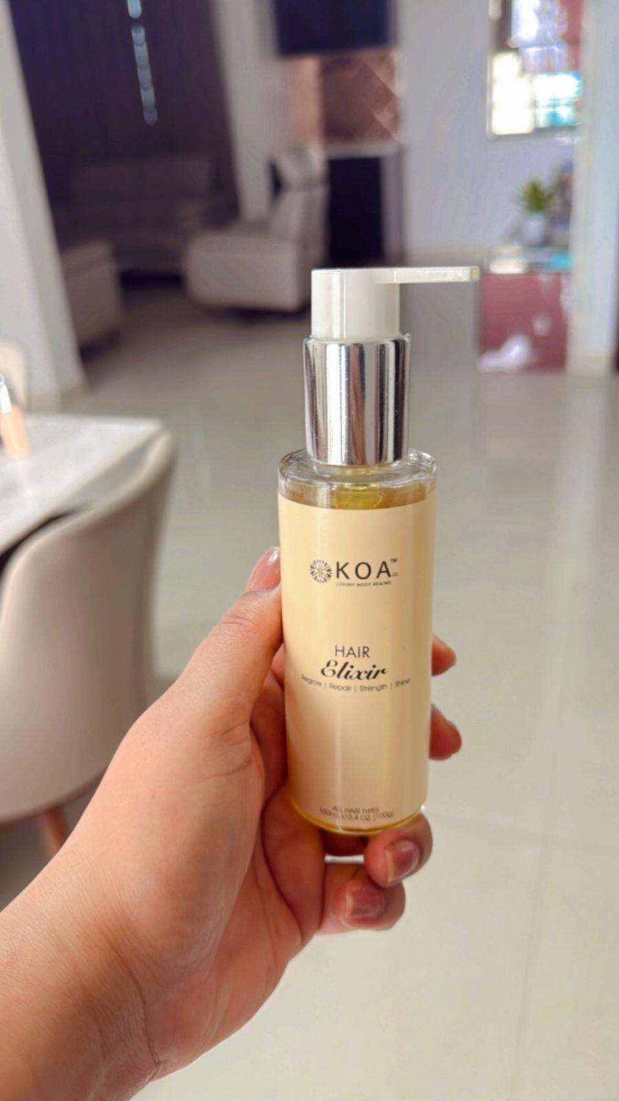 This has become an essential part of my haircare routine! It is incredible for adding shine, reducing frizz, and giving my hair a healthier look overall. The scent is light and pleasant, not overwhelming like some other oils. Its subtle but fresh the quality of koa products is always impressive, and their hair elixir is no exception.