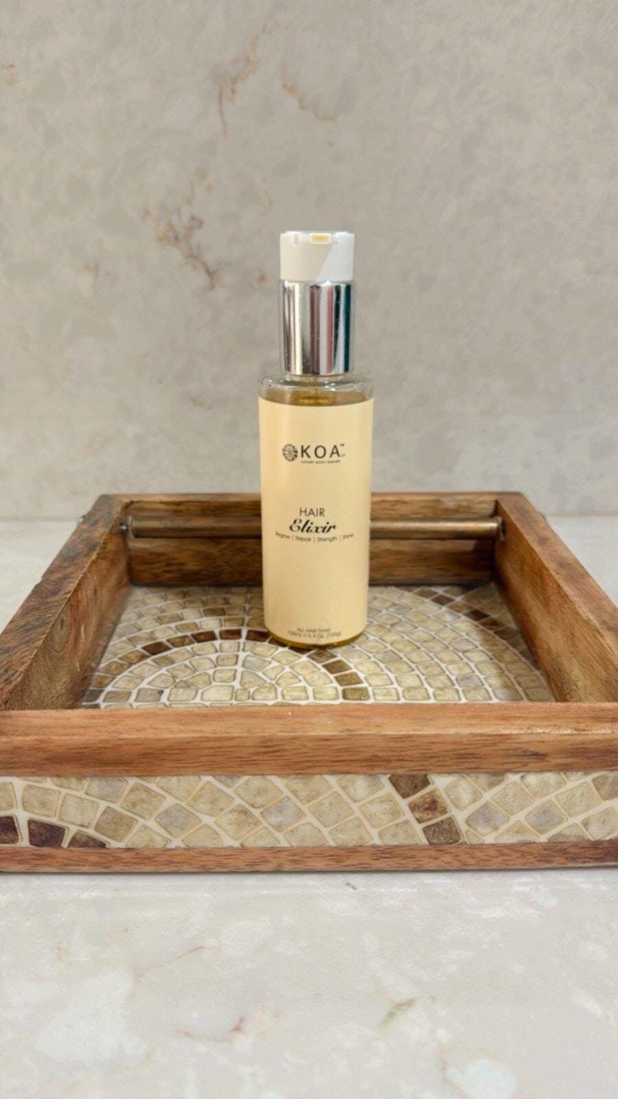 Hi there! Thank you so much for taking the time to leave such a lovely review. We are thrilled to hear that our Hair Elixir has become an essential part of your haircare routine and that it has helped to add shine, reduce frizz, and give your hair a healthier look. We take pride in using high-quality ingredients in all of our products, and we're glad that the scent of our elixir is to your liking. Thanks again for choosing KOA Luxury and for your continued support. Have a great day!